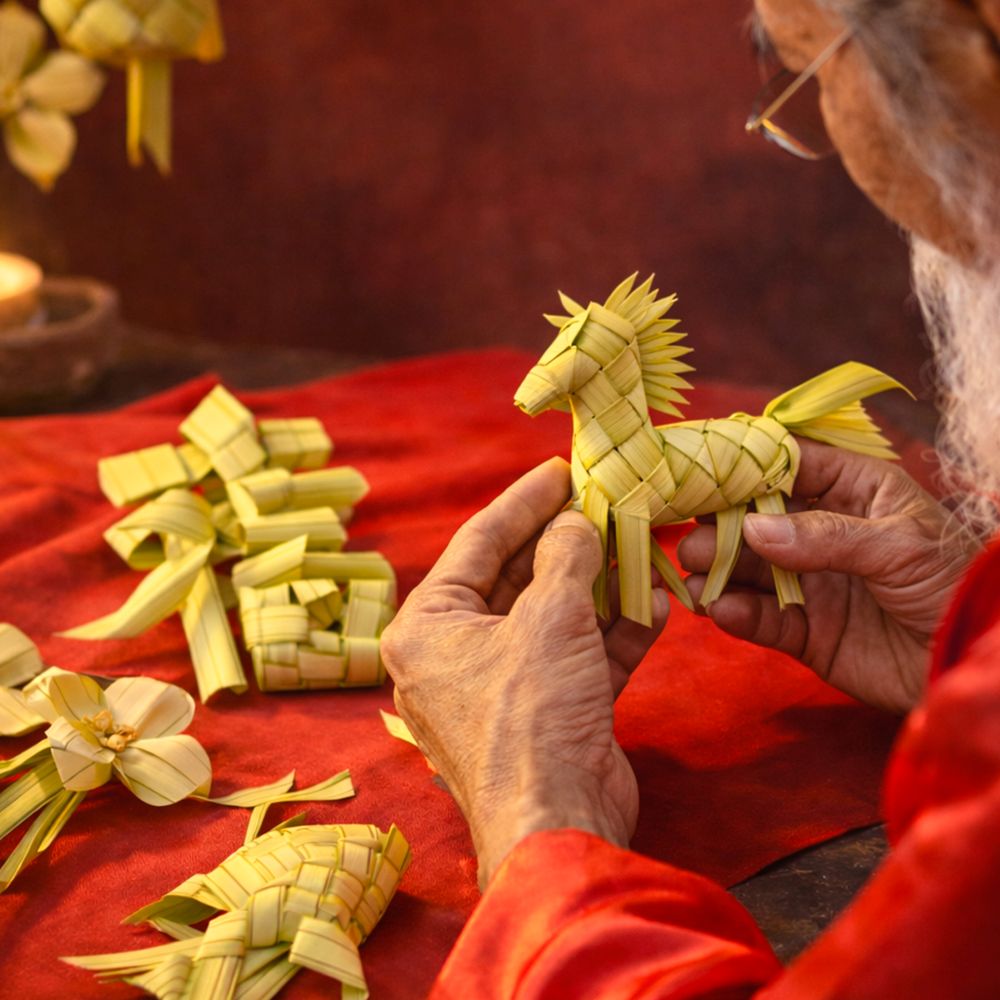Không ồn ào, không phô trương, Tết tại Courtyard by Marriott Danang Han River dần hé mở như một bản nhạc xuân nhẹ nhàng. Đó là khoảnh khắc khai bút đầu năm - nơi những nét mực gửi gắm ước nguyện an lành. Là nụ cười trẻ thơ bên sắc màu tò he dân gian. Là bàn tay khéo léo đan lá dứa, kể câu chuyện thủ công Á Đông mộc mạc mà tinh tế.