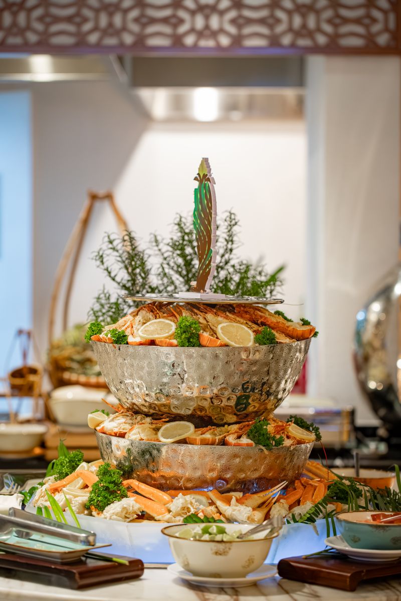 Hành trình ẩm thực tại Azura và Nook mở ra như một phần không thể thiếu của kỳ nghỉ, nơi hương vị hòa cùng không gian biển và sắc màu lễ hội. Trong khung cảnh khoáng đạt hướng ra đại dương, các bữa tiệc buffet được thổi hồn bởi nguồn cảm hứng từ ngày Giải Phóng Miền Nam, với những điểm nhấn cờ đỏ sao vàng rực rỡ và không khí sôi động lan tỏa qua từng buổi tối.