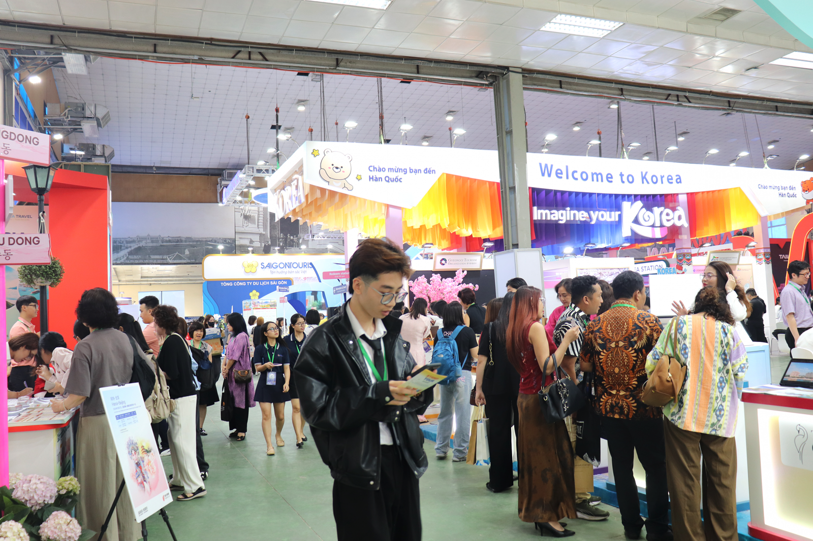 Rất đông khách tham quan tới gian hàng du lịch quốc tế của Cục Du lịch Hàn Quốc