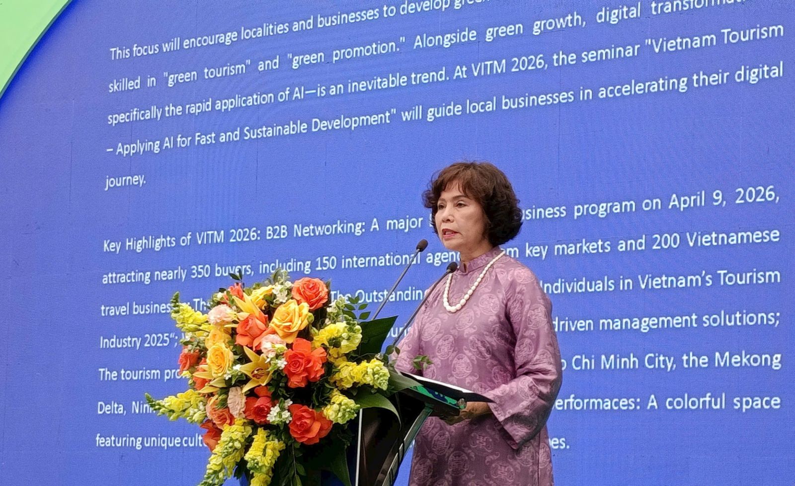 Phó Chủ tịch Hiệp hội Du lịch Việt Nam Cao Thị Ngọc Lan cho biết, chủ đề này góp phần thúc đẩy các địa phương, doanh nghiệp tập trung xây dựng điểm đến và sản phẩm du lịch xanh; đào tạo nguồn nhân lực; đẩy mạnh xúc tiến theo hướng bền vững, hướng tới mục tiêu đưa du lịch trở thành ngành kinh tế xanh. Bên cạnh đó, chuyển đổi số, đặc biệt là ứng dụng công nghệ hiện đại và trí tuệ nhân tạo (AI), đang trở thành xu thế tất yếu của ngành.