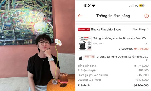 Một đơn hàng tai nghe chính hãng từ Shopee Mall giúp Hào tiết kiệm đến 500.000 đồng. Ảnh: NVCC
