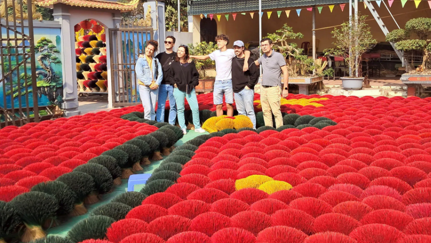 Du khách tham quan làng tăm hương Quảng Phú Cầu (xã Ứng Thiên). Ảnh: Hoài Nam